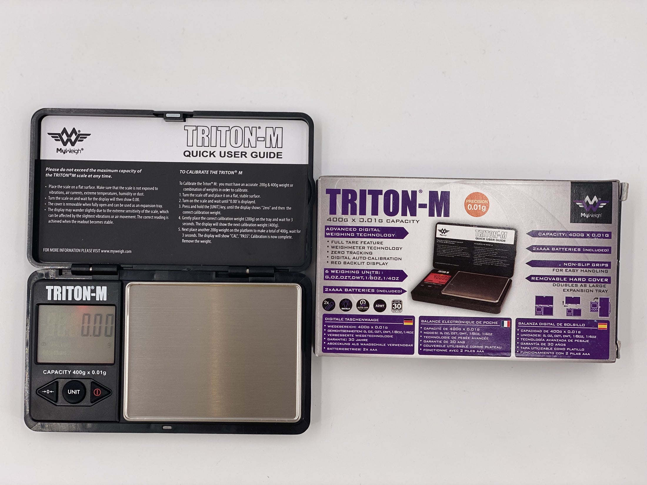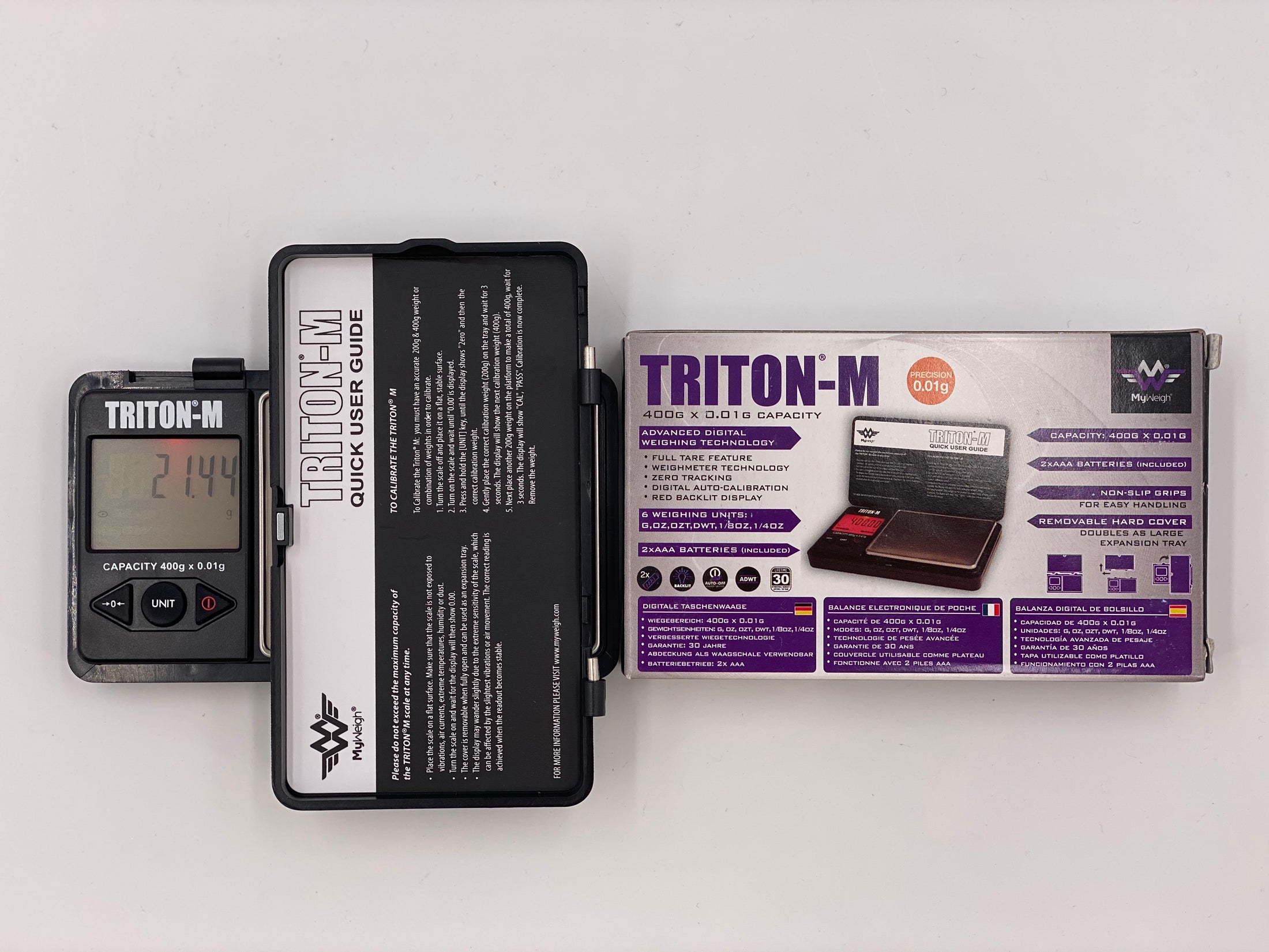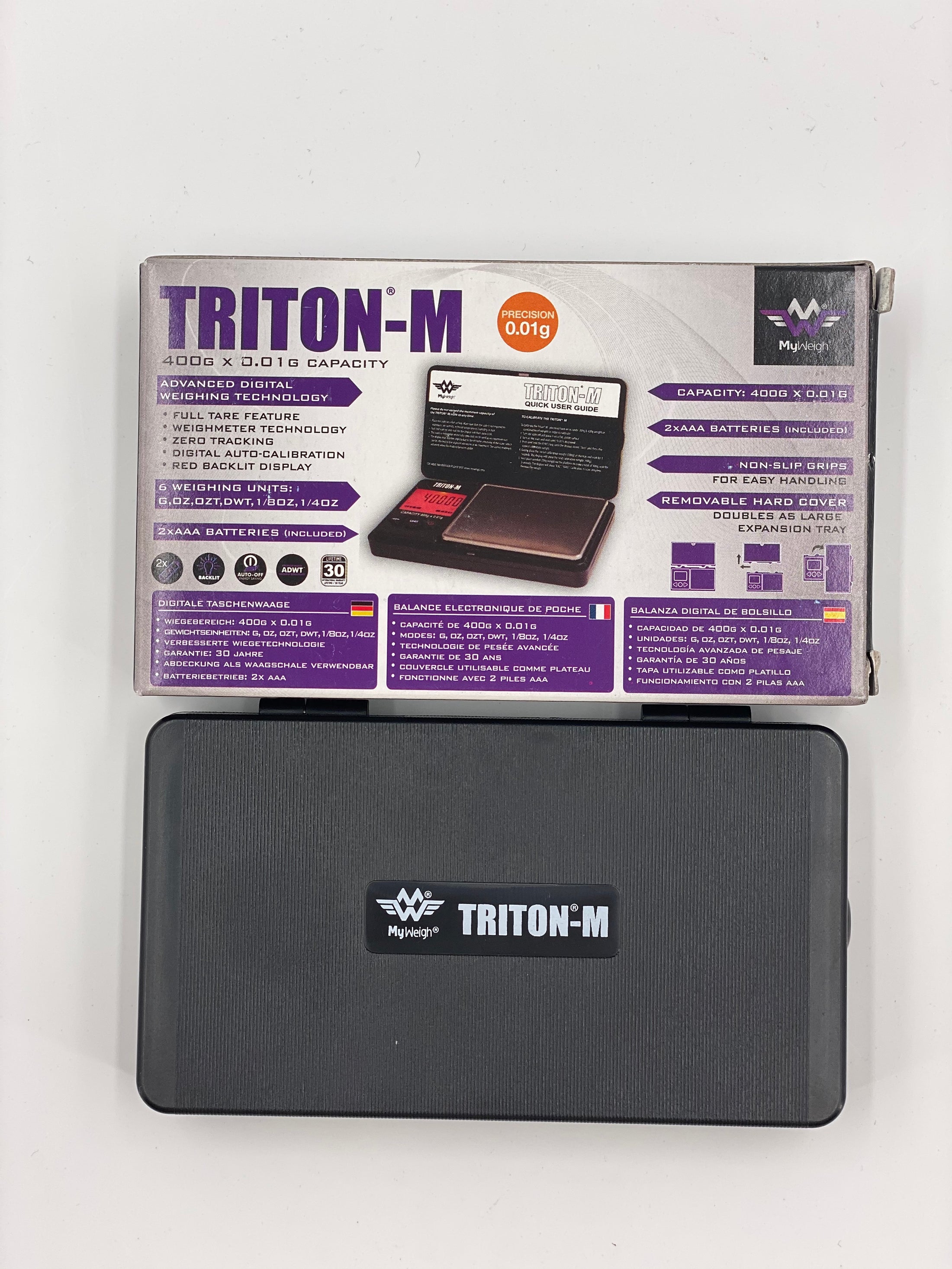 The My Weigh Triton-M is the same proven, affordable and high-quality precision pocket scale as the Triton T2, but in miniature form. Equipped with a protective hinged hard cover that doubles as a removable expansion tray, an easy-to-read LCD display, 5-Point Overload Protection System to prevent overload and non-slip rubber grips. The My Weigh Triton-M is a miniature pocket scale with Advanced Digital Weighing Technology features, and a best-in-class 30 year / lifetime warranty.